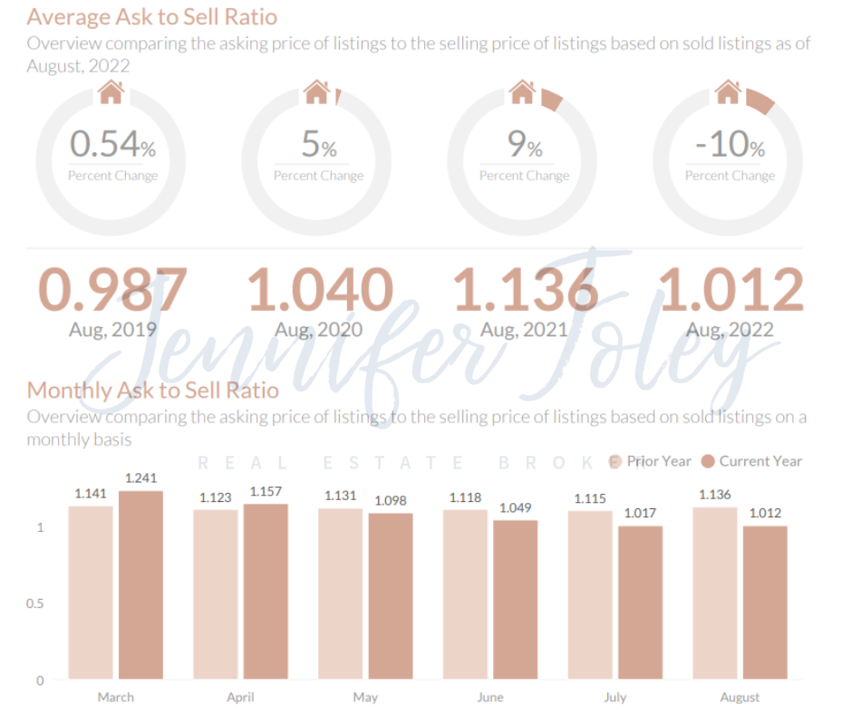 - August 2022- The average ask to sell ratio was 1.012, a 10.88% decrease from August, 2021