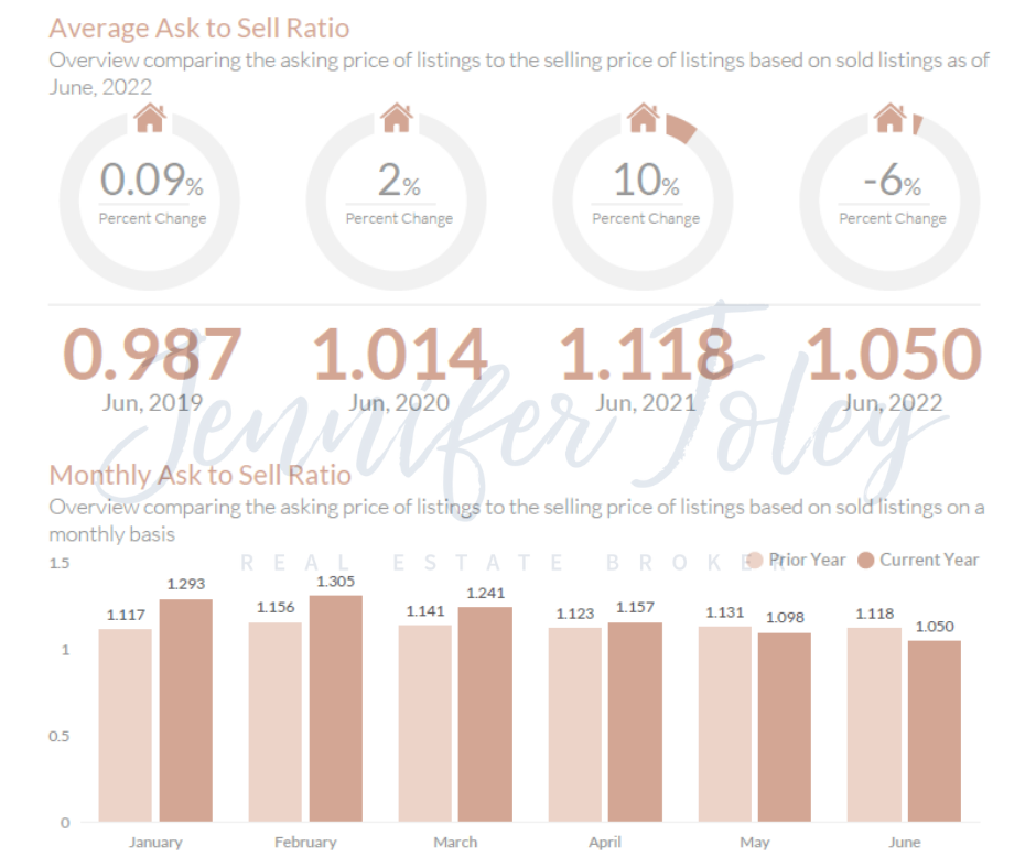 The average ask to sell ratio in June, 2022 was 1.050, a 6.05% decrease from June, 2021 with an ask to sell ratio of 1.118. We have seen a year to date average ask to