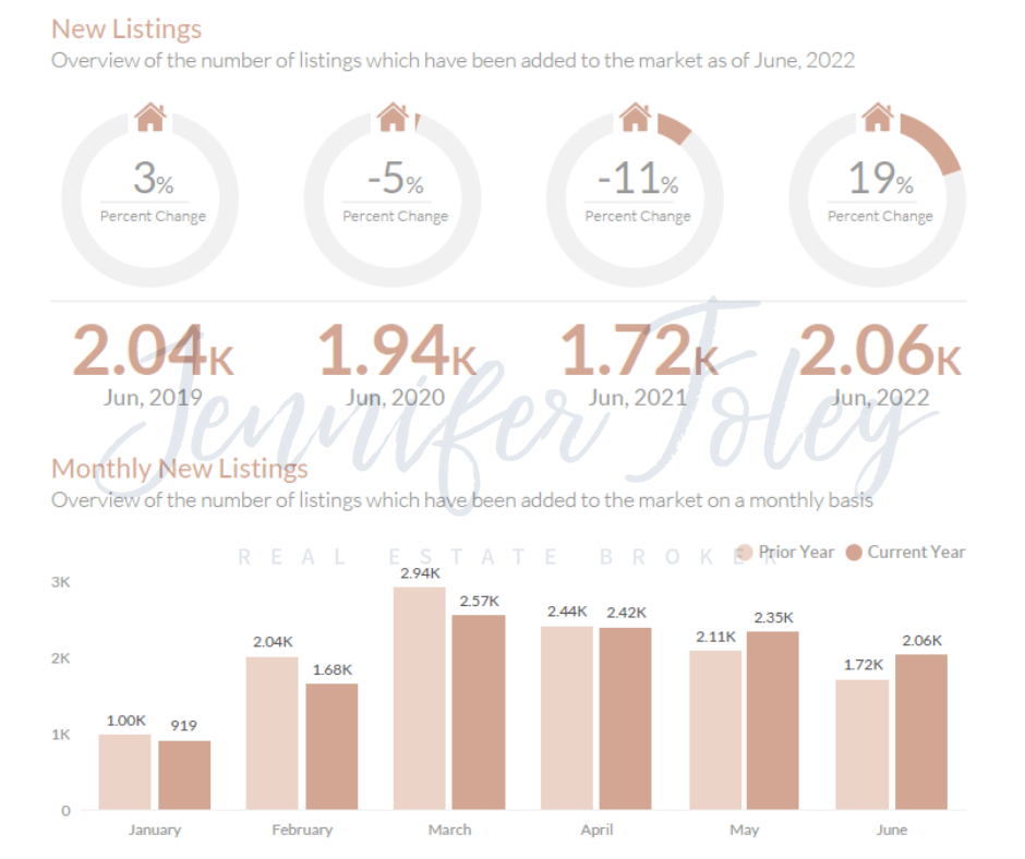 - June 2022 - There were 2.06K new listings, a 19.64% increase from June, 2021.