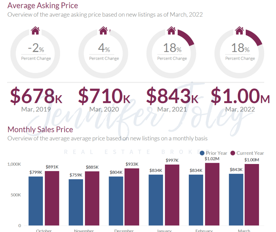 - March - 2021: The average asking price was $843K, an 18.83% increase from March 2020