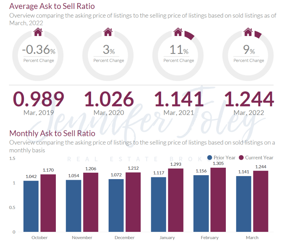 - March 2022: The average ask to sell ratio was 1.244, a 9.04% increase from March 2021